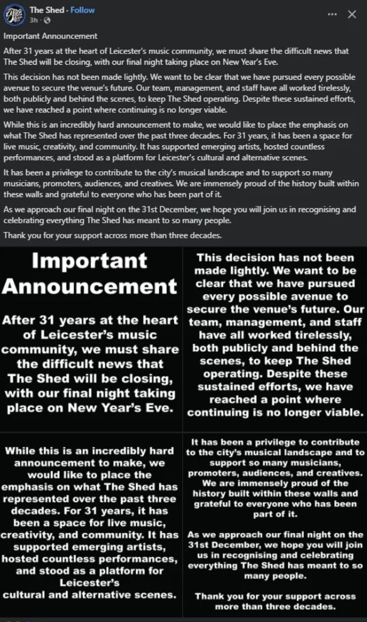& then two days ago, the long neglected Leicester venue The Shed asked me to be part of the line-up for their final gig on the 28th December