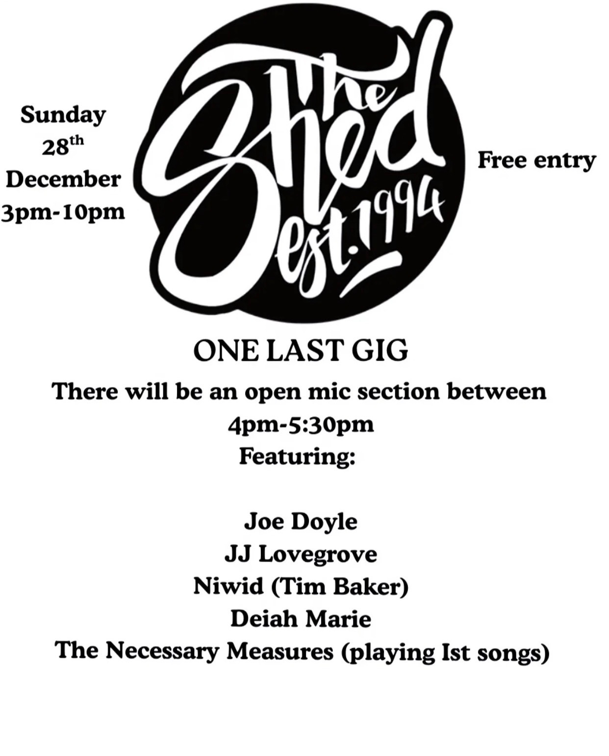 So when The Shed (via Joe Doyle) asked if I’d like to take to their stage this one last time